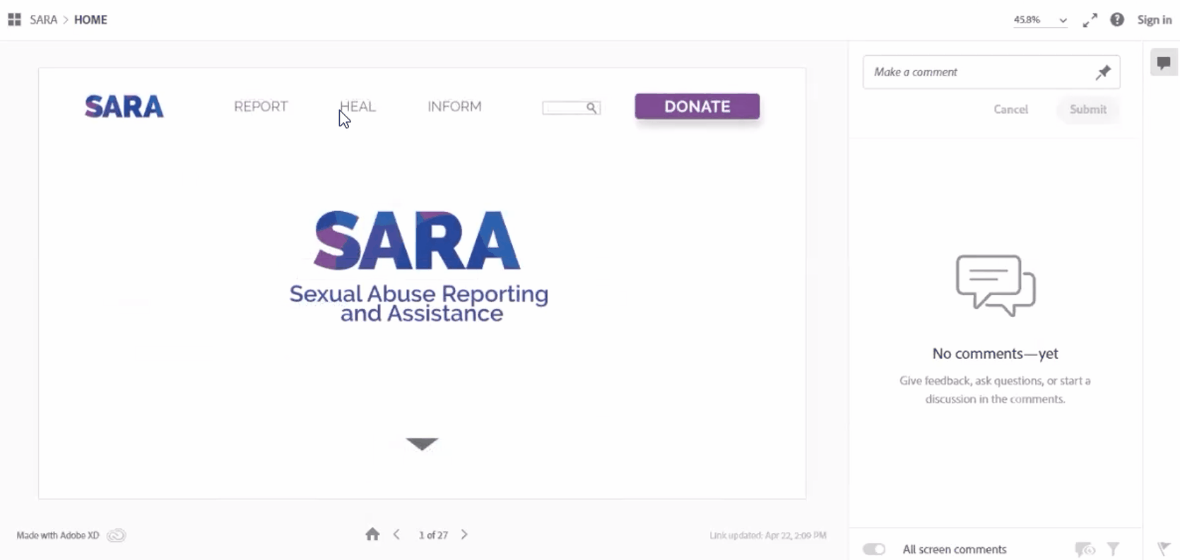 SARA was a project developed by a team of four. Together we designed, prototyped, and conducted UX reseach to refine the process using iterative design. Among the deliverables was a press kit, fully functioning prototype (made in AdobeXD), and complete UX research reports.